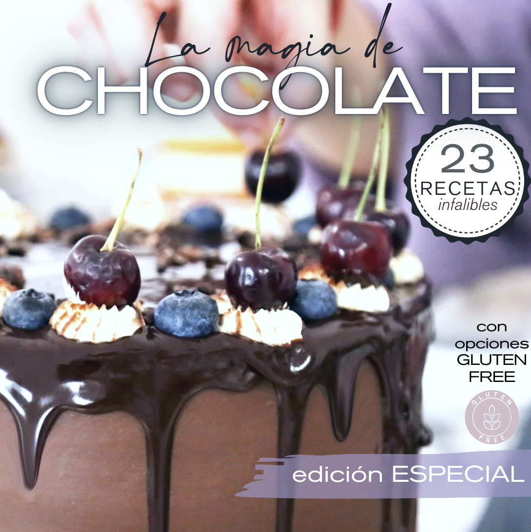 Ademas, en el recetario Magia de Chocolate encontrarás recetas deliciosas para crear variaciones usando la receta estrella del pastel de chocolate. Te invito a explorar estas recetas y liberar tu creatividad haciendo tus propias combinaciones!